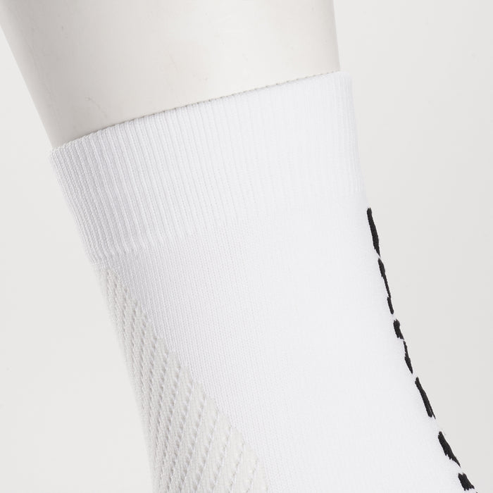 Air-permeable mesh fabric on foot for optimal temperature regulation and great breathability. High-density weave in the arch provides cushioning and extra support.