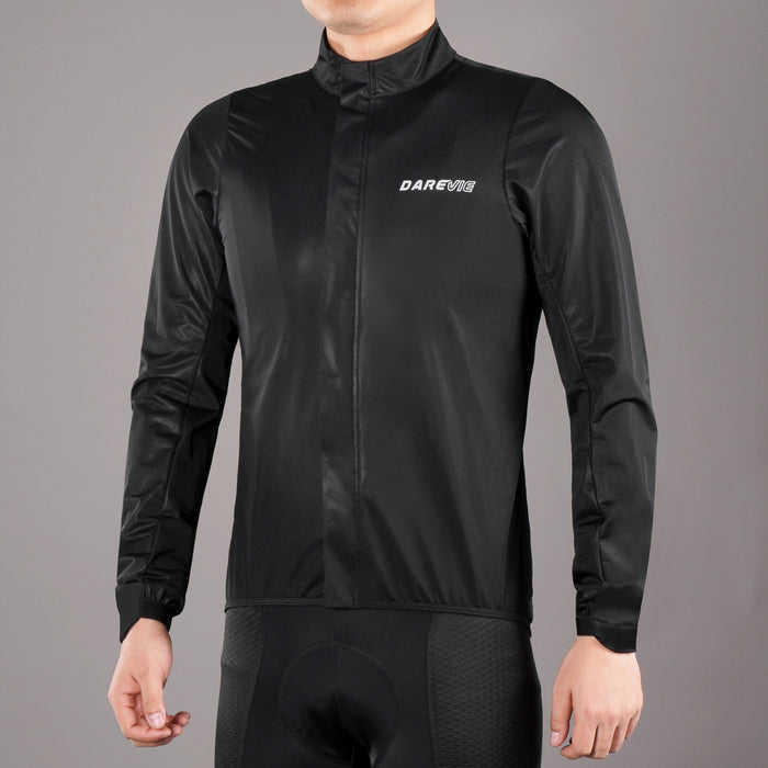 This lightweight cycling rain jacket is designed for drizzly conditions, featuring a water-resistant fabric and a relaxed fit that layers easily over your jersey without restricting movement. Rear ventilation ports help release heat and moisture, keeping you dry and comfortable during climbs, steady cruising, or daily commutes.