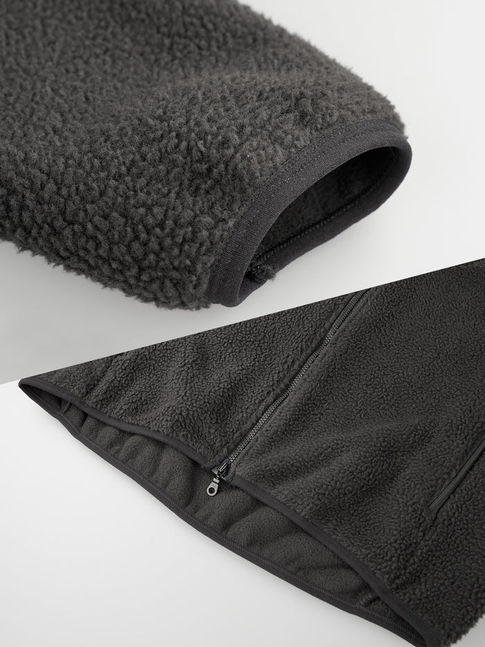 The Casual Fleece Jacket features an relaxed fit, perfect for casual wear and cycling. A classic black design pairs with a stand collar and YKK zipper for wind protection and easy wear. Zippered side pockets on both sides store essentials like phones, keys, or cycling tools, with an anti-pinching zipper end for comfort.
