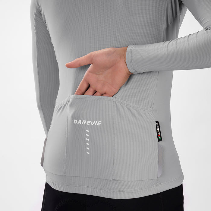 The Gray long sleeve summer cycling jersey brings understated style and advanced breathability to warm-season rides. Crafted for comfort and airflow, it keeps you cool and dry while providing essential sun protection.