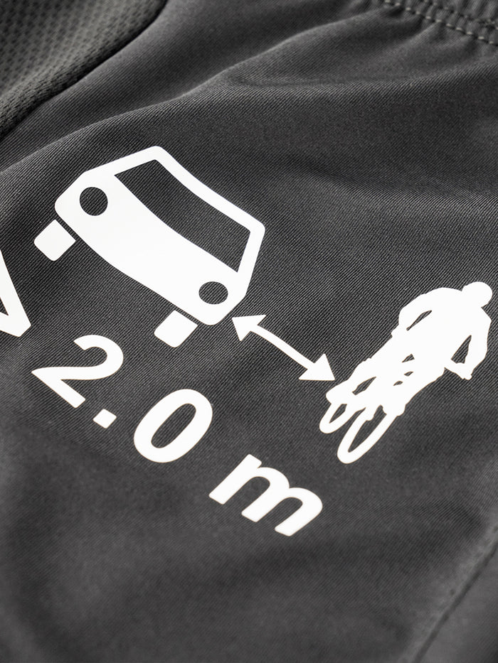 A printed 2.0m safe distance graphic promotes road awareness, encouraging vehicles to pass cyclists responsibly.